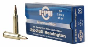 PPU PP22250 Standard Rifle 22-250 Remington 55 GR Soft Point (SP) 20 Round Box