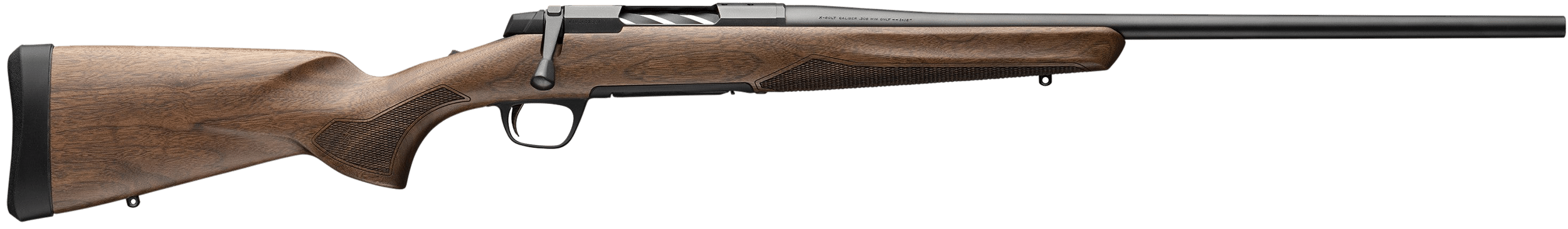 The Browning X-Bolt 2 Hunter features reconfigured receiver with additional bolt guidance surface area for smoother operation; redesigned bolt with ergonomic handle shape; adjustable, multiple-lever DLX trigger; Satin checkered Walnut stock; Sporter grip installed with a vertical grip supplied; Sporter contour; thinner bottom metal and 1.25″ Inflex recoil pad.