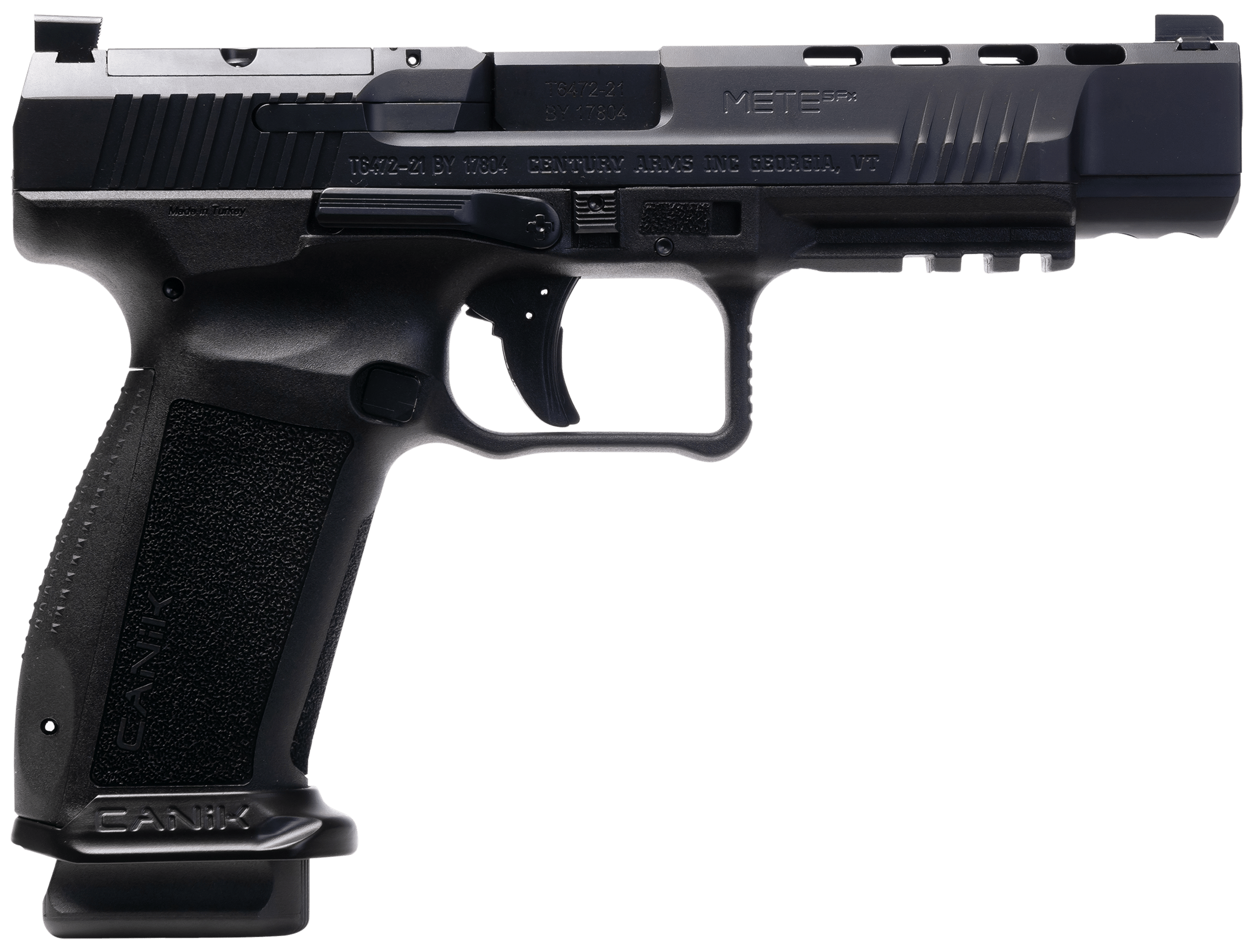 The METE SFx series incorporates changes designed to take a great product and elevate it to the next level of semi-automatic sporting pistols. The external changes are subtle. An integrally flared mag-well allows for fluid reloads and extra support for the grip, aggressive texturing to include the front of the grip allows for increased stability; the double undercut trigger guard secures the support hand on the firearm; the low profile slide stop lever and angled rear sight edge increase functionality in a multitude of situations; a co-witnessing optics ready slide cut now accepting everything from a Trijicon RMRcc all the way to a micro optic allows for a constant and reliable sight picture; ergonomically redesigned beavertail. The internal changes begin with easy in, easy out push pins that can be removed using slight pressure and the Canik punch. Includes a hard case, two standard capacity magazines, magazine E-Z loader, Speed mag-well, extra back strap, two optics bases, reversible IWB/OWB holster, Canik punch and toolkit, cleaning kit, gun lock and manual.