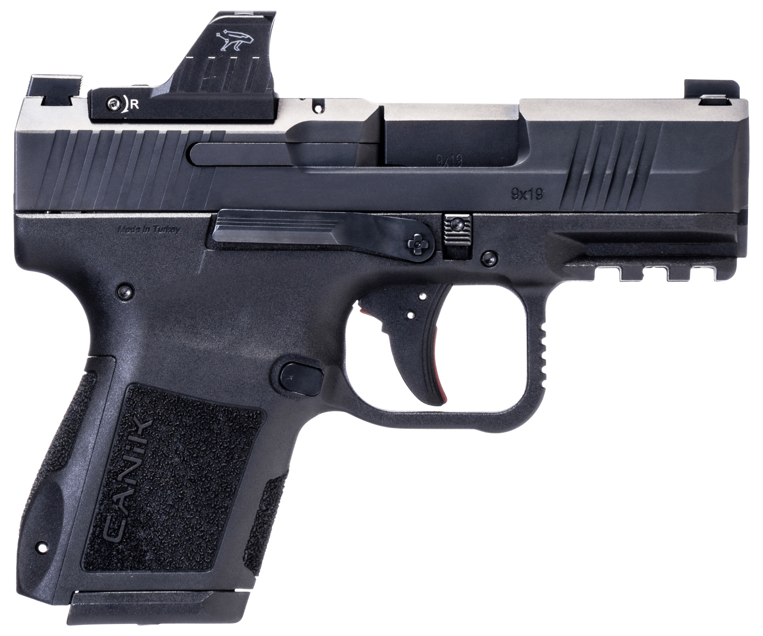 Canik HG7620VN Mete MC9 9mm Luger 15+1, 3.18″ Black Steel Barrel, Black Tenifer Cerakote Optic Ready/Serrated Steel Slide, Black Polymer Frame w/Picatinny Rail, MeCanik M01 Red Dot