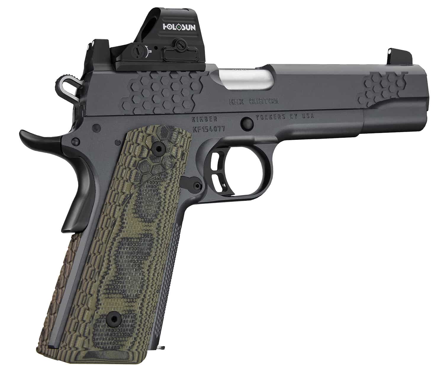 Kimber Mfg, Inc 3000434 KHX Custom 9mm Luger 9+1 5″ Stainless Match Grade Barrel, KimPro II Gray Serrated Stainless Steel Slide, Kimpro II Gray Stainless Steel Frame w/Beavertail, G10 Grip, Holosun HE507C-GR-X2 Red Dot