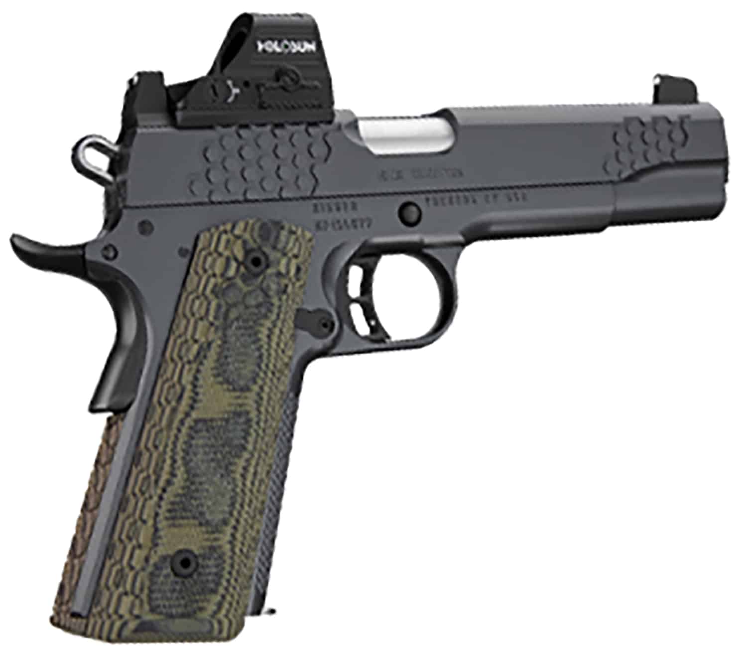 The KHX Custom features a milled slide and a Stiplex front strap stippling for extra grip confidence. Includes Holosun HE507C-GR-X2 red dot optic.